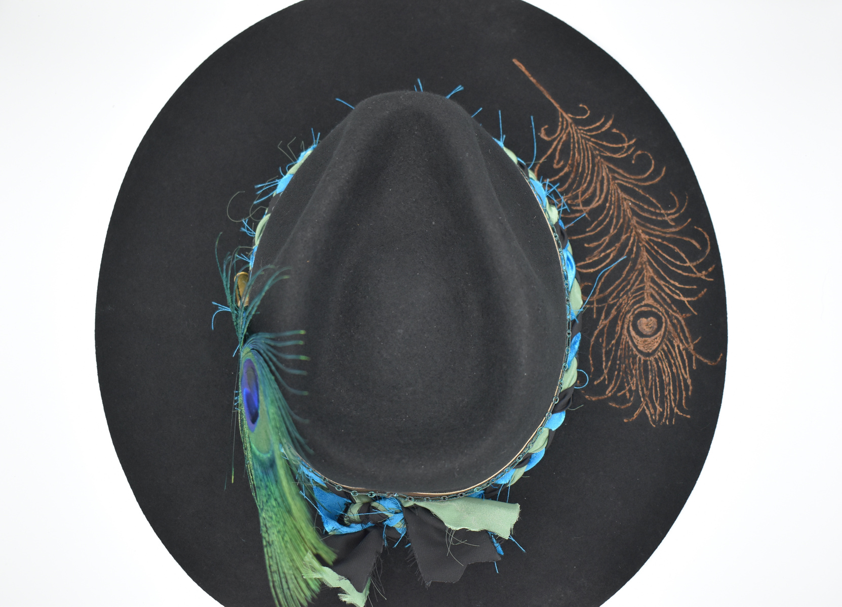 Hudrie Hats are made from 100% soft Australian wool felt. Each hat has a velcro adjuster strap on the inside of the cotton twill sweatband, by our Hudrie Hats logo and sizing tags. Our hats are made from a variety of different materials. We strive to use repurposed fabrics to create your desired look.