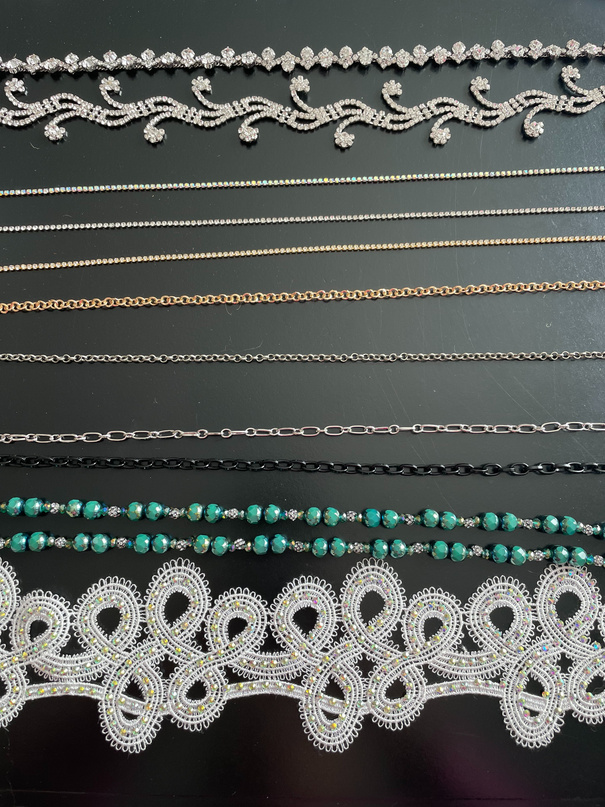 Comes with 1 of three studded trim (Brown, White, Black with gold studs)